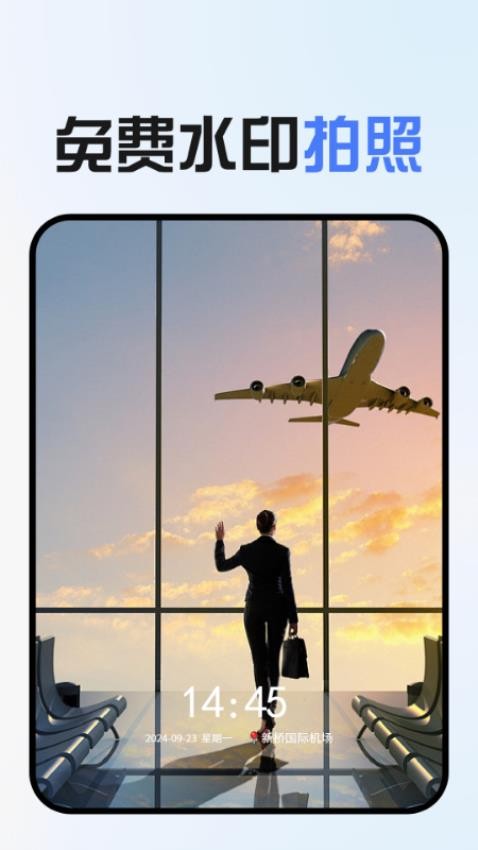 1. 基础功能:用户打开软件后,可通过“拍照”按钮直接拍摄新照片,或从相册导入已有照片进行编辑。在拍照界面点击“水印”图标,可选择预设模板或自定义水印内容,调整后点击“确认”即可保存。