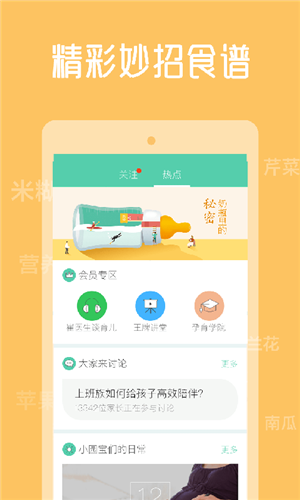 2、精彩妙招辅食:所有父母都是孕育达人,怀孕养娃妙招互相交流。同龄宝妈食谱分享,宝宝辅食不再困惑。