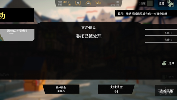 9、满足:英雄对玩家很满意,满意度高于70,愿意以较低价格接受悬赏。