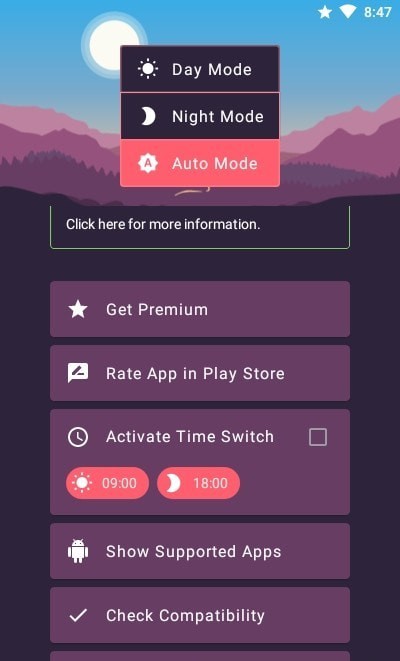 很多小伙伴喜欢晚上熬夜玩手机,并且是在不开灯的黑暗环境下玩手机,这会对眼睛的健康造成严重影响,久而久之会诱发近视等眼部疾病。黑暗阅读模式app是款可以自动调节手机亮度的工具,手机系统的最低亮度在晚上还是很亮,有了它,我们可以将屏幕亮度调的更低。