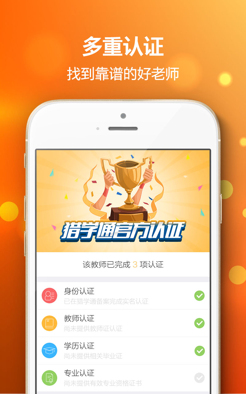 “猎学通”O2O教育辅导平台由福建北科信息技术有限公司研发于2015年8月,是基于互联网的创新模式,通过大数据的分析技术,结合教育行业特点,实现老师和学生的有效、高效匹配,免费提供线上线下相结合的初高中教育服务模式。即保证了传统一对一教育的高质量教学,还能为学生、家长找到合适自己的辅导老师,提供了更便捷的方式、途径、更优惠的价格。让教与学更加智能、有效、平等。