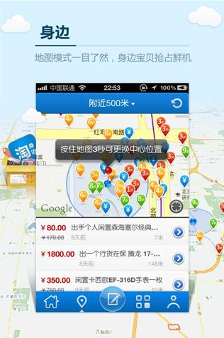 上即可完成身边宝贝搜索、讨价还价、联系购买等操作。