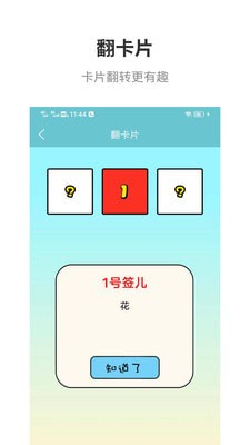 3. 翻卡片功能:用户可以自定义卡片的数量和内容,通过翻卡片的方式来随机选择。