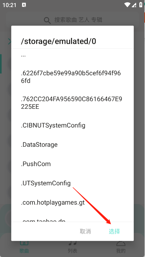 4、找到含有本地音乐的文件,点击选择。