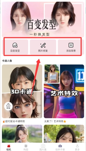 2、创意虚拟换发和卡通特效功能丰富,免费体验基础玩法,满足个性化创作需求。