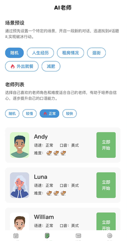 2、支持多场景对话训练,覆盖日常、职场、社交等多种场景,全面满足不同交流需求并定期更新。
