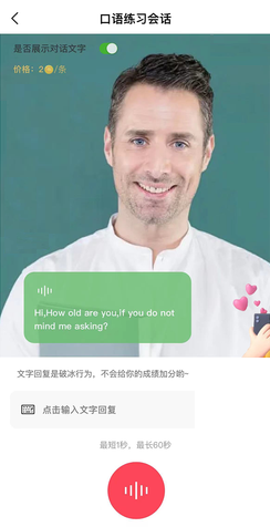1、AI陪练随时在线,彻底解决无人对话练习的难题,让用户随时能开口、大胆练口语。