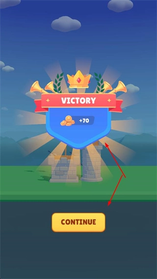 3、进程推进顺畅:成功击败对手获取胜利后,点击继续按钮即可进入后续环节,可领取奖励、修复城堡或解锁全新关卡,稳步推进游戏成长流程。