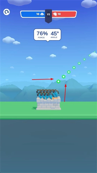 2、攻击操控直观:战斗中可操控角色调整弓箭发射角度与力度,瞄准目标发动攻击,凭借精准操作实现高效打击,抵御敌军进攻并击溃敌方防线。