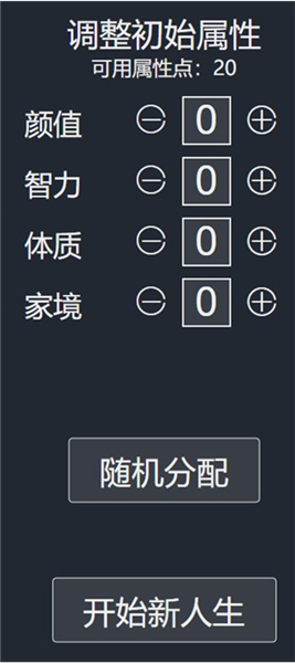 4、可调整初始属性,也可随机分配,最后点击开始新人生;