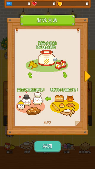 设备得到提升后,制作面包的效率也会提升,比如小麦的收获数量翻倍,烤面包的时间缩短,店内的摆放栏增加...,不断提升设备等级。