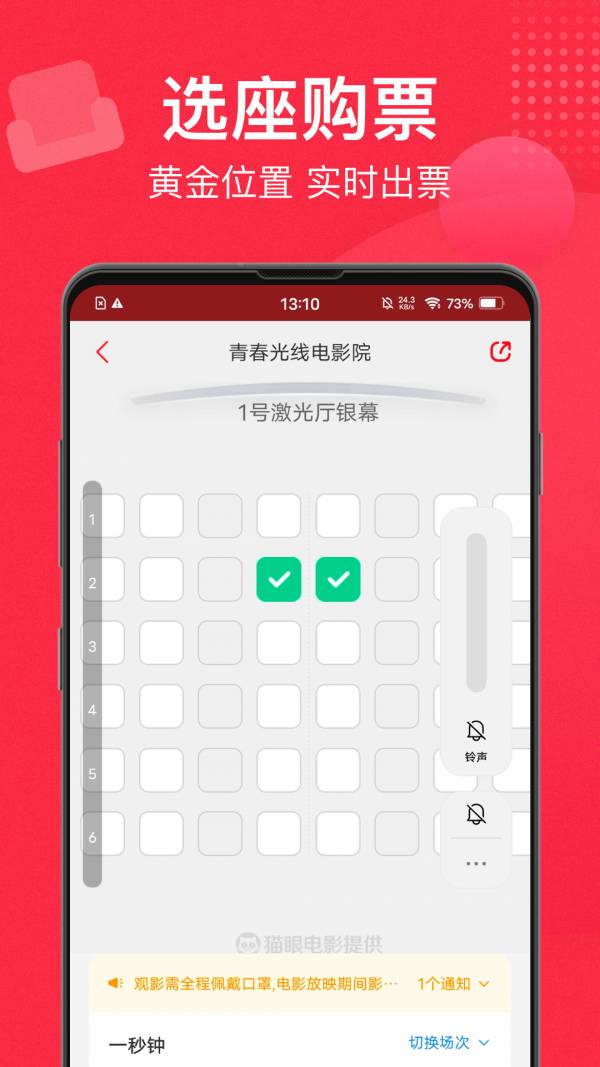 2. 用户可以通过软件查找附近的电影院,选择心仪的场次进行购票,还可以享受优惠活动。