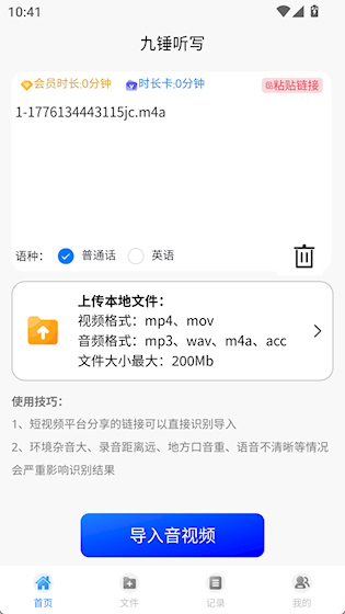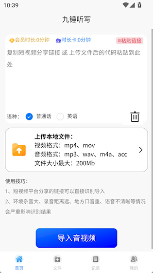 九锤听写是一款语音转文字应用,为需要快速记录语音内容的人群设计,支持本地录音、视频文件和在线音频的实时转写,能够精准提取声音中的文字信息,具备高识别率与低延迟特性,文字输出准确流畅,是日常记录与资料整理的得力助手。