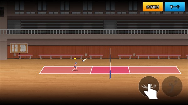 1、来到游戏中就会出现一个教程,直接点击右侧的第一个选项,就能将排球打出去。
