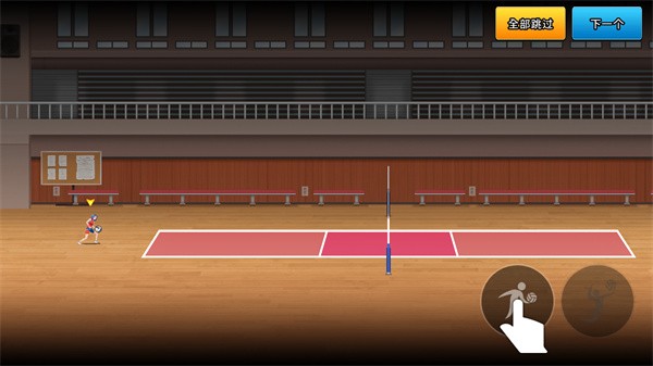 2、然后可以点击第二个选项,角色会往后退然后跳跃起来,再次点击,就能直接扣球。