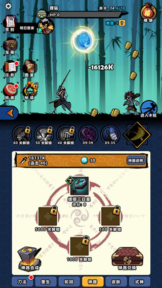 轮回将重置关卡、刀法、金币、勾玉和重生技能