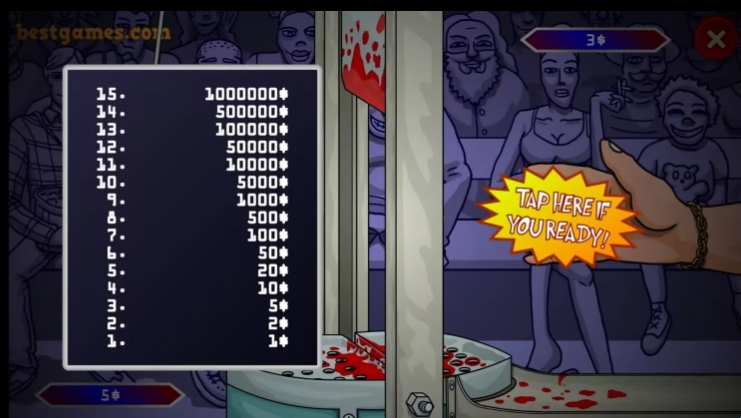Handless Millionaire 3是一款趣味十足的模拟游戏,模拟加入一档电视节目,节目里正在进行“拿钱”挑战。想要获得奖金,必须把双手伸进锋利的小型断头台,在铡刀落下之前成功取出钞票,一次失手就可能遭受重伤。节目舞台灯光闪烁,台下观众欢呼声此起彼伏。铡刀由金属制成,边缘打磨得异常锐利。赶快下载游玩吧!