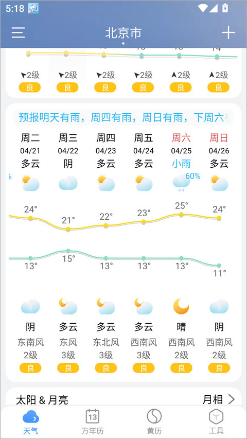 4、权威数据来源,提供未来多日的精准天气预报,让用户对未来天气变化了如指掌。