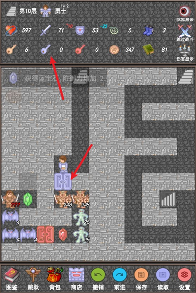 5、点击下方的跳跃即可随时快速跳跃至已经经过的层数。(需要拾取对应道具后才会解锁)