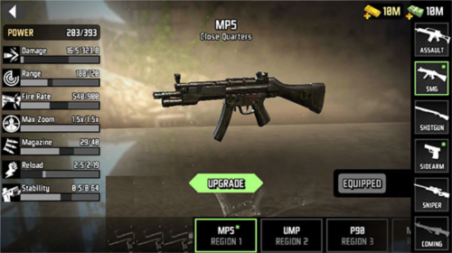 2、点击左侧的“WEAPONS”,选择想要使用的武器,右侧是枪的类型,左侧可以看到相关的数值。