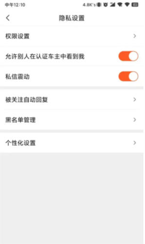 3、在隐私设置页面中找到个性化设置选项,点击后进入个性化设置界面。