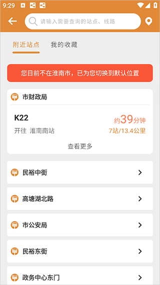 3、允许手机获取地理权限后,系统会根据用户的地理位置实时定位到最近的公交站台。用户也可以手动输入或选择相关公交信息,如公交站名或公交路线。