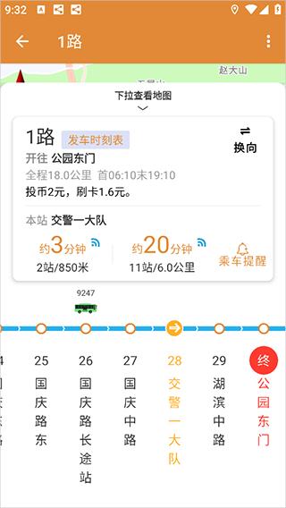 5、公交地图:在地图上查看公交路线,随行车移动,随时掌握方位。