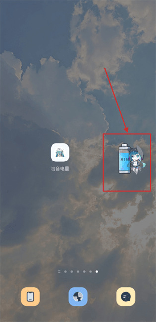 6、拖放到桌面后,即可看到对应的初音电池电量显示(刚拖放可能出现图标空白不显示的情况,稍等片刻即可正常显示)。