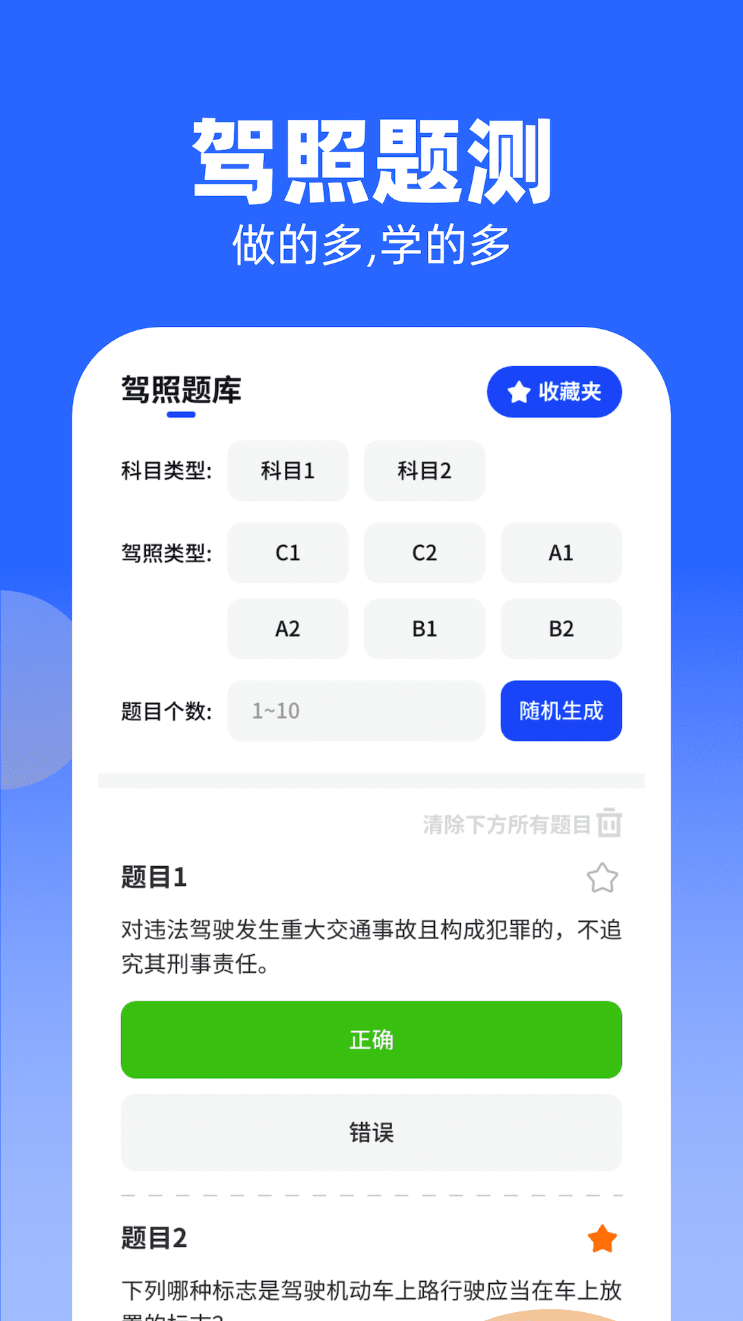 【收藏夹功能】这个功能允许用户将做错的题目收藏起来,方便日后再次复习。