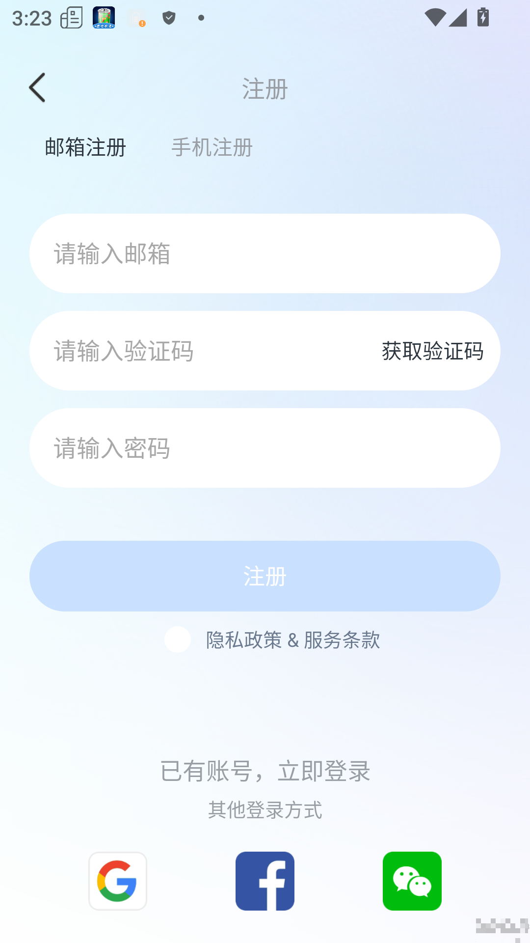 进入后点击登录注册