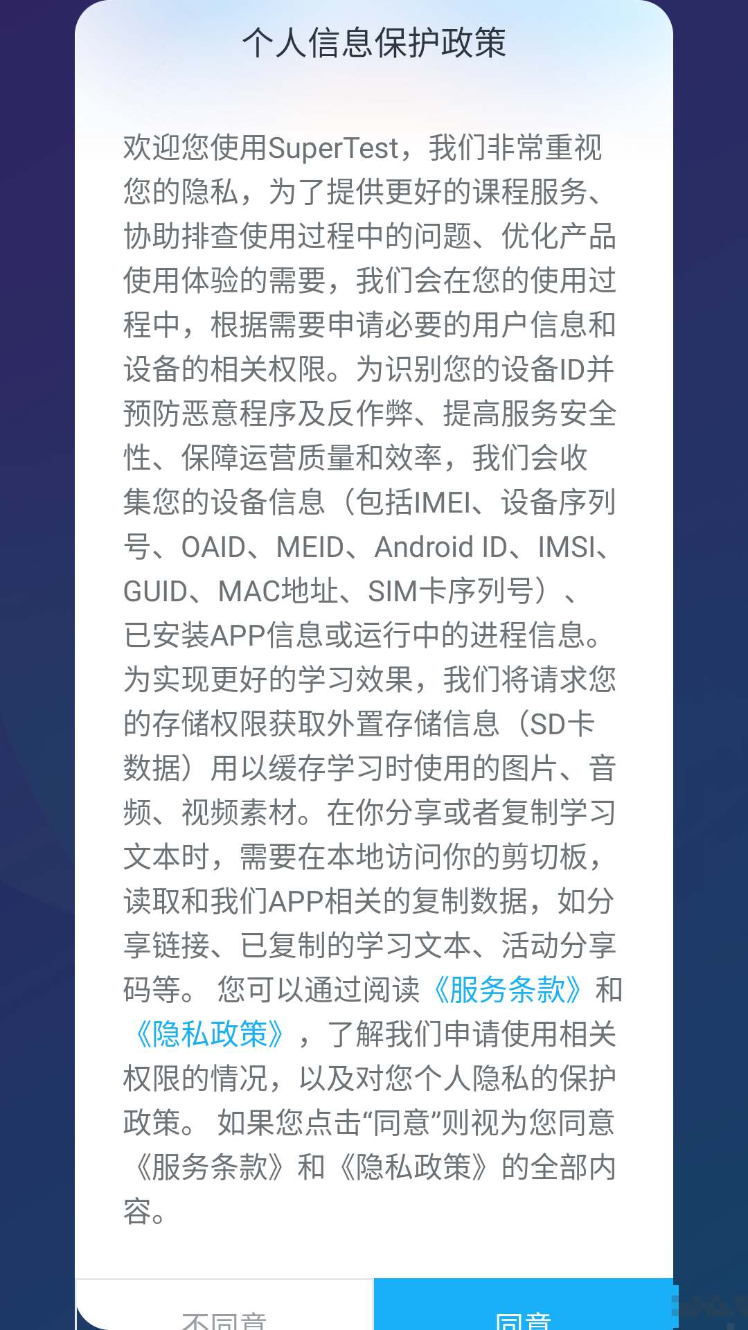 打开app点击同意