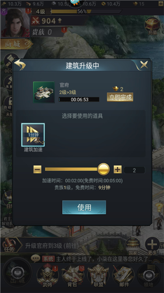 官府:主城中最核心的建筑,可影响全部建筑的等级上限,是封地发展的基础,需优先升级。