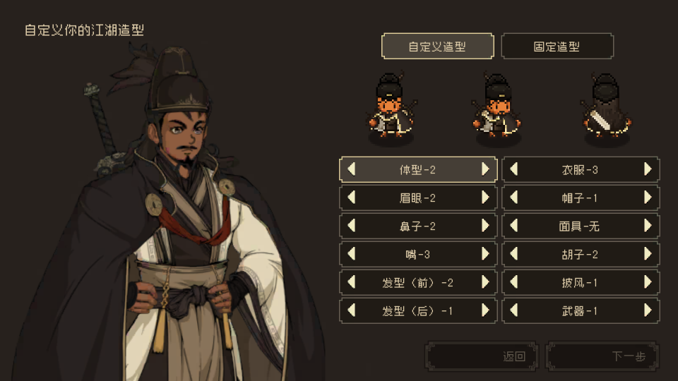 2、你可以自定义你的江湖造型,然后点击下一步;