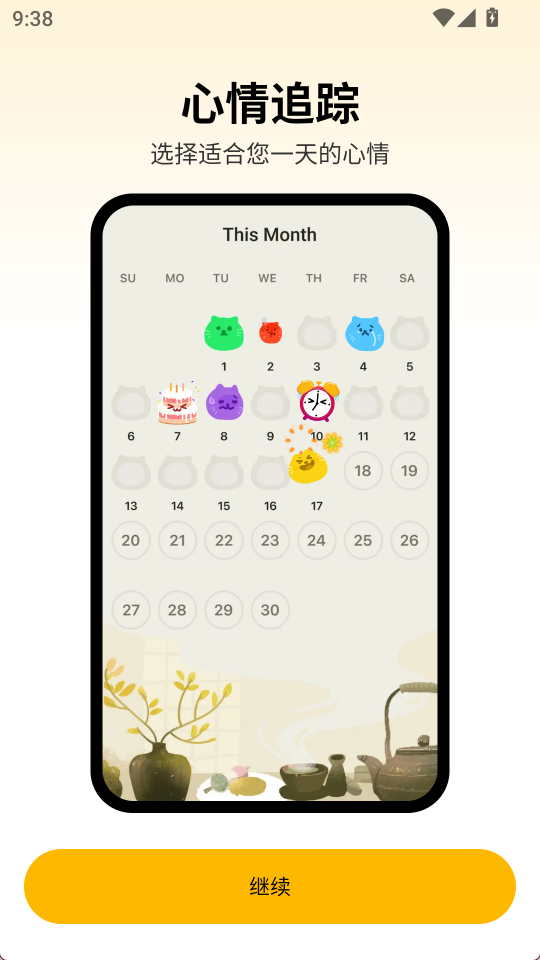 2、 日历视图:以月度或周度形式展示历史心情轨迹,不同颜色代表不同情绪状态,一目了然掌握变化规律。