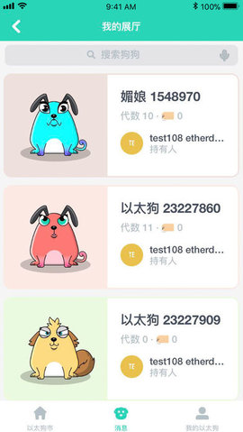 5. 用户可以通过交易系统与其他用户进行狗狗的交易,获取以太币。