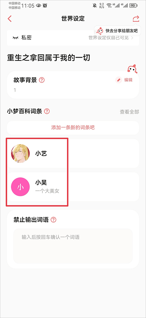 2、进入目标故事后,点击故事标题下方的世界设定,进入对应设置界面。