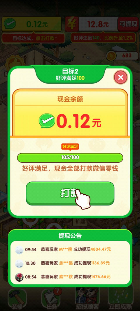 玩家通过完成游戏任务提升“好评”,从而获得提现红包奖励。任务接取方式如下: