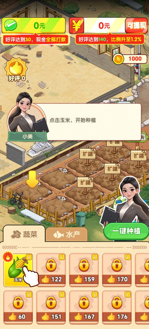 3、点击玉米开始种植。