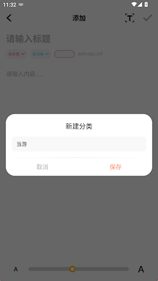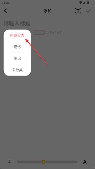 1、分类界面是没有新建分类功能的,需要点击+,在创建笔记界面新建分类