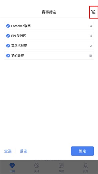 2、点击对应图示图标,即可进入赛事选择界面,挑选自己关注的电竞赛事。
