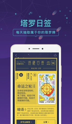 2. 分享功能:用户可以将自己的占卜结果分享至社交平台,与朋友进行互动。