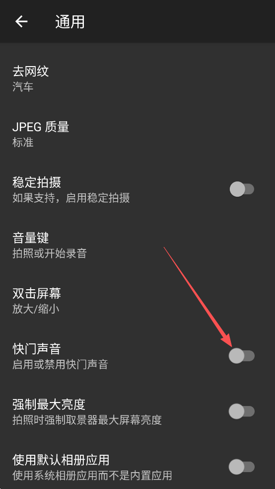 3、在通用设置中,找到“快门声音”选项,点击关闭即可完成操作。
