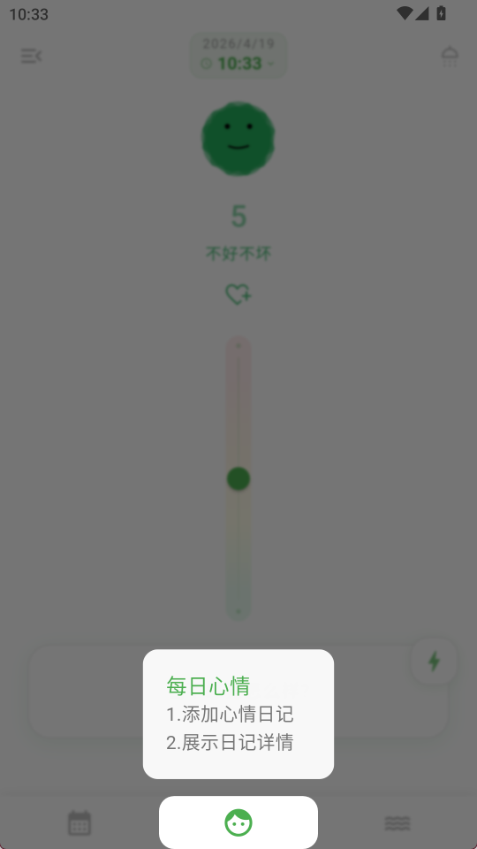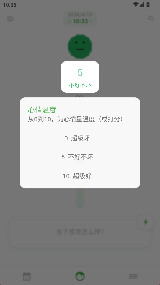 1、 心情量化记录:提供0到10分的心情温度打分机制,让模糊的情绪感受变得清晰可测。每一次点击都能准确捕捉当下的心境状态,形成连续的情感轨迹。