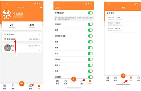 4、发布表单后,可实时接收和查看数据。到“我的”页面中开启通知,并选择需要通知的表单。