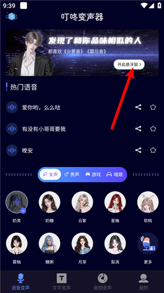 2、进入主页点击"开启悬浮窗"按钮,打开后即可进行悬浮窗变声使用。