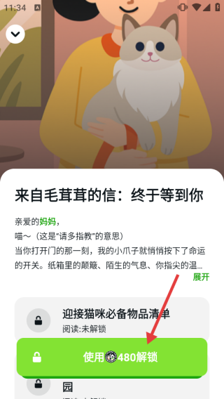 3、若信件有锁,点击【使用480解锁】消耗对应道具解锁阅读。
