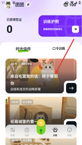 2、在训练页,点击【来自毛茸茸的信:终于等到你】查看信件内容。
