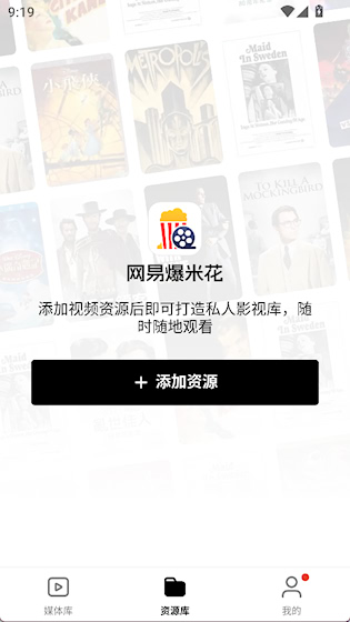 1、打开网易爆米花APP,点击添加资源
