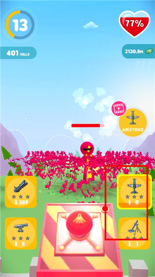 人群防御是一款卡通风格射击塔防手游,操控威力巨大的火炮抵御如潮水般涌来的敌人,从基础火炮到电磁脉冲炮,丰富的武器库等待解锁,不同敌人拥有独特弱点与行动逻辑,需要灵活切换装备应对危机。