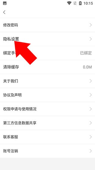 3、在弹出的设置界面中,点击“隐私设置”选项。